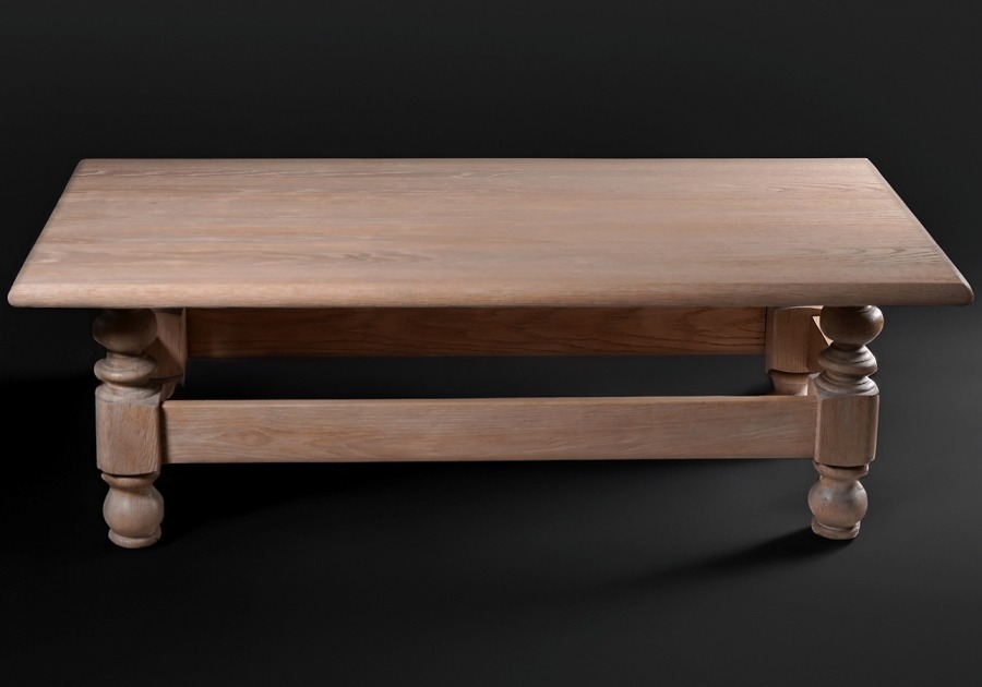 Cette table basse était un pur produit des années 70/80, costaude et massive, en chêne vernis très foncé. Bien conçue, stable et de bonnes dimensions, elle méritait de conserver sa place au salon. C'est chose faite, après un décapage par aérogommage, un ponçage, une sous-couche et