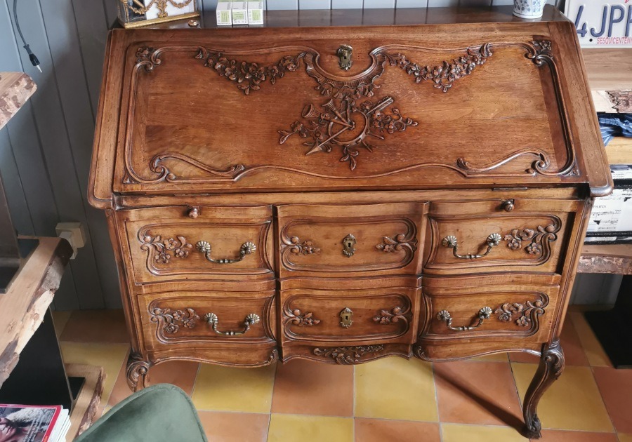 Nouveau style pour ce scriban ou secrétaire à dos d’âne.